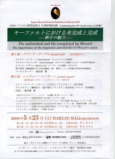 1部のラウンド・テーブルでは世界に名だたるモーツァルト研究者が席を並べ、未完の作品における断片やスケッチを通して、さらに様々な補筆に関する論議や問題提起が行なわれ、私達にとってはかなり難解な部分もありましたが、大変貴重なレクチャーであったと思われます。